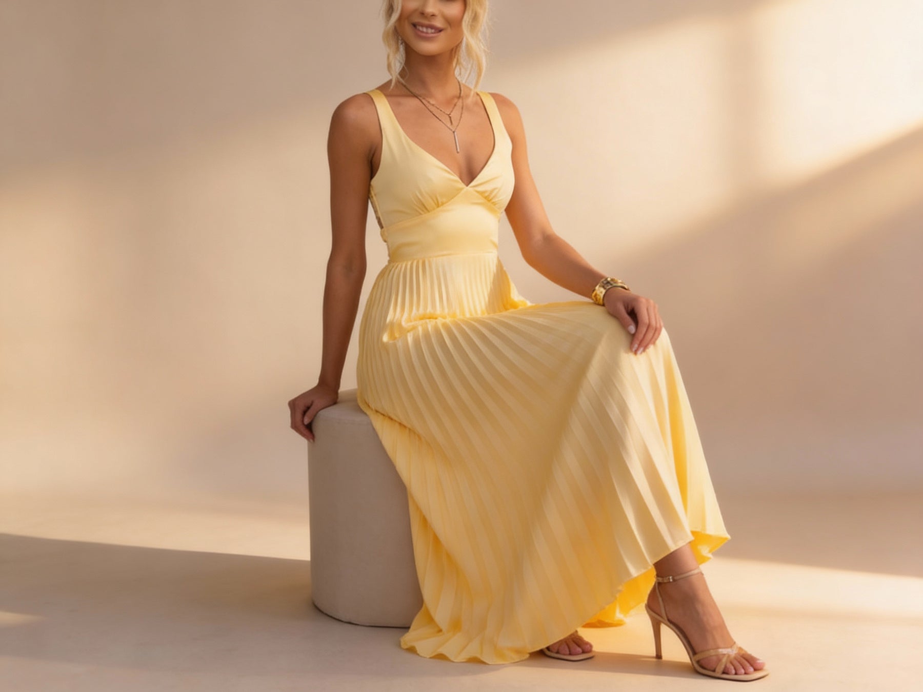 Les plis fluides créent un mouvement gracieux et confèrent à la robe un charme intemporel et subtil — parfait pour les célébrations, les événements ou les soirées romantiques.