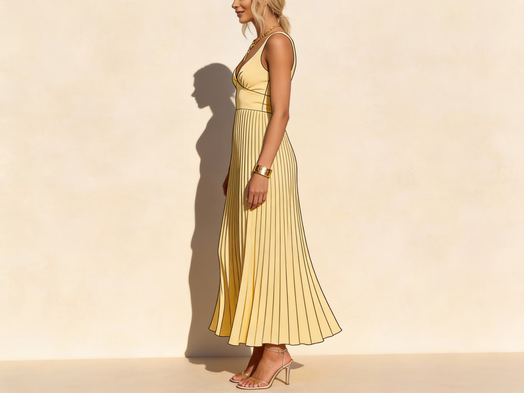 Rayonnez d’élégance à chaque pas. La robe Sunniva capture une sophistication décontractée grâce à ses plis fluides, son décolleté en V flatteur et sa silhouette délicatement structurée — le choix parfait pour les occasions élégantes et les moments spéciaux.